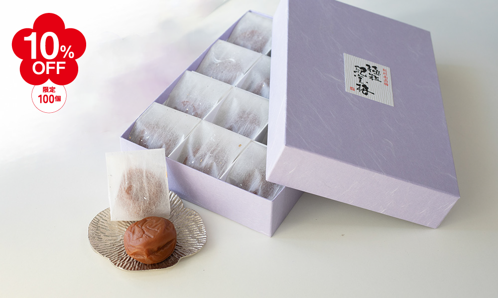 極粒の南高梅をひとつぶひとつぶ和紙で包みました。2つのセットからお選びください。