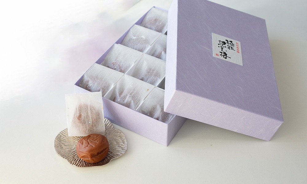 極粒の南高梅をひとつぶひとつぶ和紙で包みました。2つのセットからお選びください。