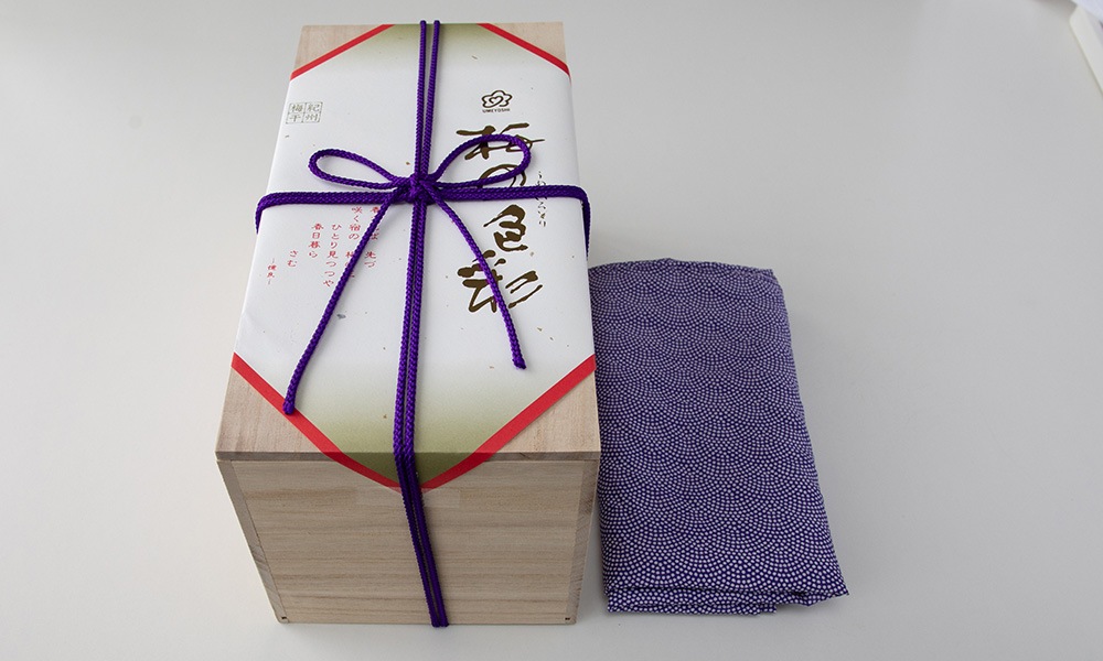 500gずつ夫婦のつぼに梅干しを詰めました。お贈りする先様のおよろこび事に合わせるお心配りがいきるギフトです。下記組み合わせよりお選びください。本品には風呂敷をお付けいたします。
