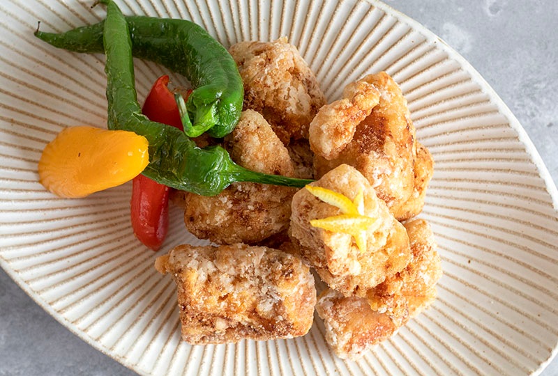 【材料】 鶏むね肉:250g/梅酢:大さじ1杯弱/片栗粉:適量/揚げ油