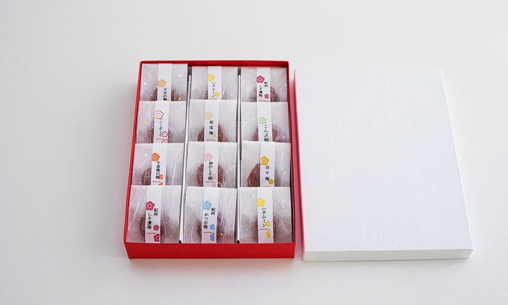 見た目も華やかなおしゃれな個包装パッケージは、贈り物や高級ギフトとしても最適。使いやすさにもこだわり、手軽に梅干しのおいしさを味わえます。