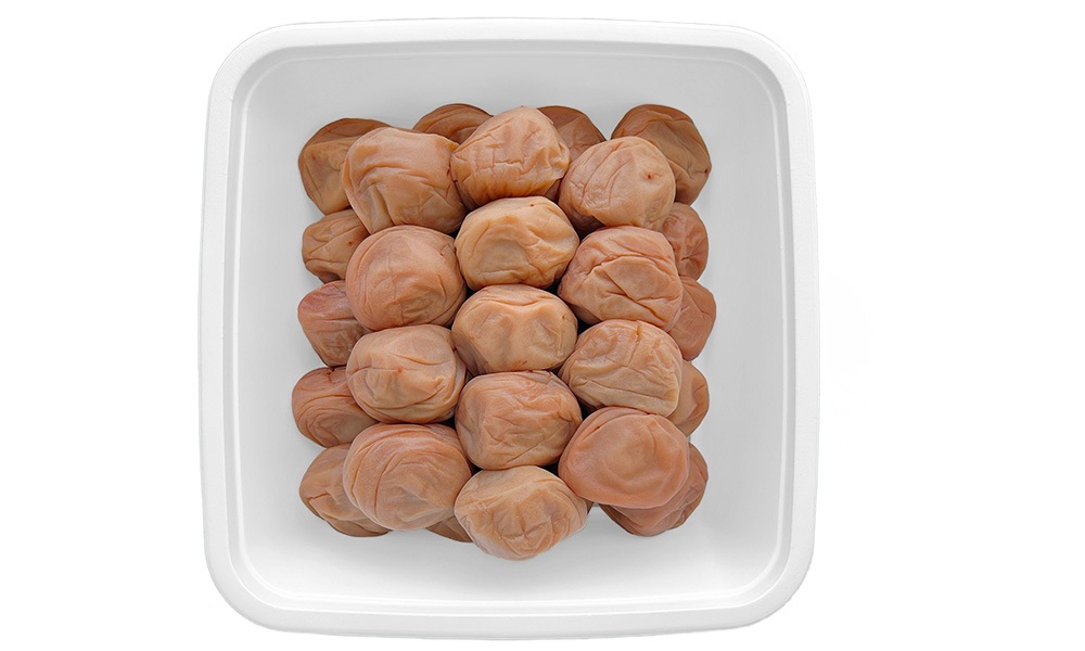 塩分・酸味を従来の半分ほどに漬け上げました。色つやよく食べやすいコクのある梅干です。